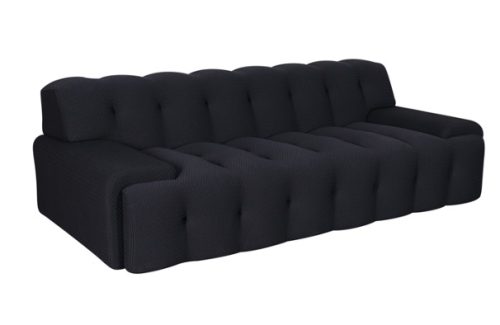 El sofá Delfinium es una pieza de mobiliario que destaca por su estructura definida. Fusiona el diseño contemporáneo con un toque clásico gracias a su tapizado capitoneado, que crean un patrón de cuadros o rombos que otorgan una textura interesante y un efecto visual de profundidad.