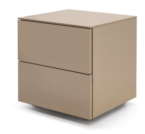 Novo es una mesita de noche de estilo minimalista y lineal. Elaborado de tablero de alta densidad, que presenta un tono beige lacado. Además ofrece dos gavetas de fácil acceso, con un práctico tirador oculto y sistema de cierre suave para mayor comodidad.