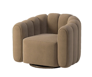 La poltrona Odaiba, con un perfil delgado, tapicería suave y redondeada, se destaca por su base giratoria y reposa brazos de tubo de metal barnizado, que proporciona estabilidad y permite un rango completo de movimiento.