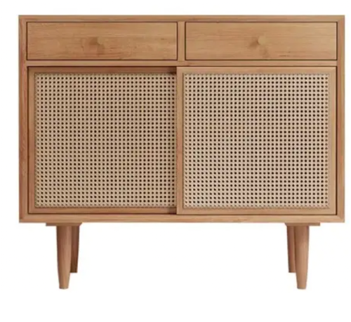 Size (cm): W90*D34*H80 Material: Ash solid wood + real rattan + golden knobs